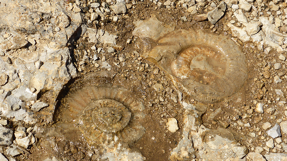 un gran yacimiento de fósiles de diversos tipos en la roca caliza