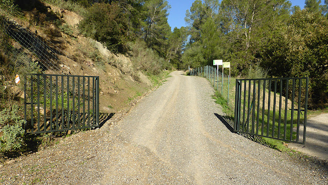 cancela sin candado que da paso al Monte Público de la Nava y La Tinajuela.